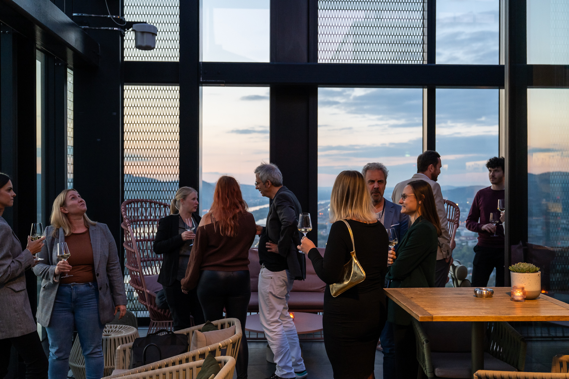Nach den Fachvorträgen lud Azerion Austria zum Get-together in die 57 Bar Lounge im 57. Stock des DC Towers. Bei Fingerfood, Drinks und spektakulärem Blick über Wien wurde der offizielle Launch bis in die Abendstunden gefeiert.
